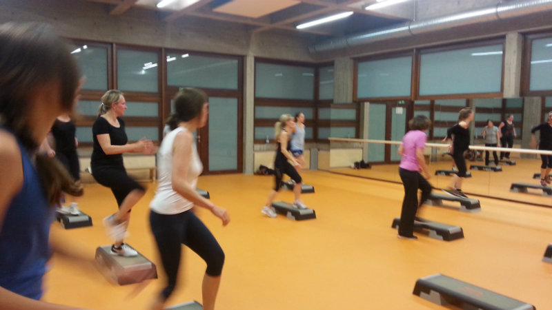 Aerobic ist ein dynamisches Fitnesstraining in der Gruppe, mit rhythmischen Bewegungen zu motivierender Musik. Die Grundelemente sind hauptsächlich Ausdauer und Koordination. Die in einer Stunde zusammengestellten Übungen, die von der Trainerin vorgeführt werden, sind eine Mischung aus klassischer Gymnastik und Tanz. Um den Anspruch noch etwas zu steigern, werden in dieser Stunde die Übungen auf einem Step ausgeführt.