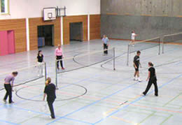 Die Sportart Badminton erfreut sich zunehmend, gerade auch bei Jugendlichen, großer Beliebtheit. Wichtig jedem Badmintonspieler ist der Hinweis, dass das Badmintonspiel nicht mit dem uns allen bekannten Federballspiel zu verwechseln sei. In unserer Jugend-Badmintongruppe werden nach anfänglichem Aufwärmtraining Schlagtechniken, Lauftechniken, Spieltaktiken trainiert die selbstverständlich auch gleich im Spiel angewandt werden. Wer Interesse hat, kommt einfach vorbei und macht mit! Trainiert wird jeden Donnerstag von 18.00 - 19.30 Uhr in der großen Sporthalle des Theodor Fliedner Gymnasiums.