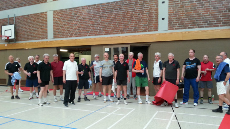 Am Montag Abend treffen sich pünktlich und ausnahmslos an die dreissig sportlich begeisterte und motivierte Herren zu Ihrer Gymnastik. Beginnend mit einer ca. einstündigen Gymnastik werden alle Muskelpartien angesprochen und keinerlei Schwächen gezeigt. Beim anschließenden Volleyballspiel laufen dann alle zur Höchstform auf.